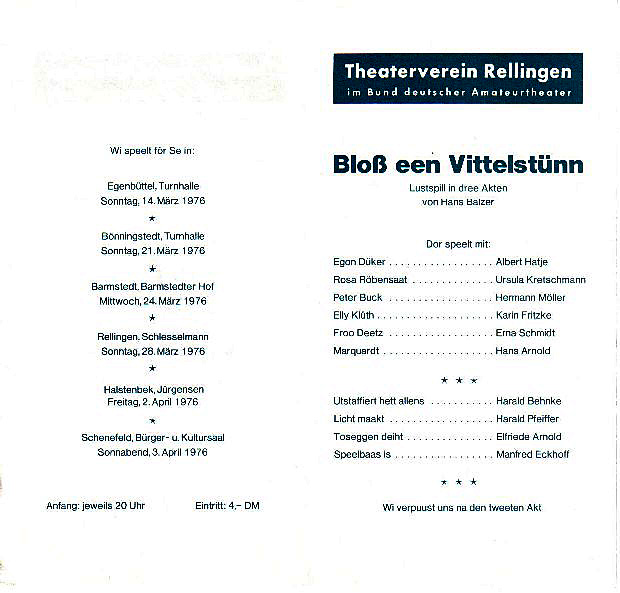 Im Frühjahr 1976 haben wir für Sie gespielt: