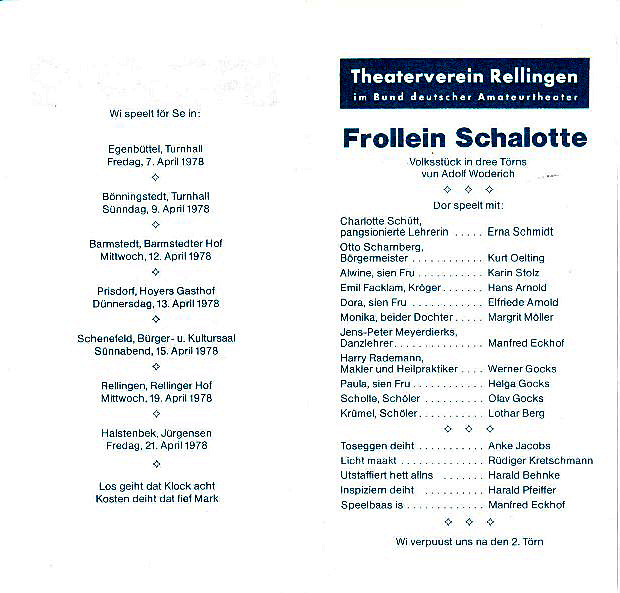 Im Frühjahr 1978 haben wir für Sie gespielt: